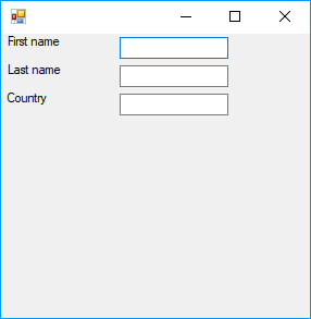 Skriv en abstraktion som skapar ett formulär med ett godtyckligt antal etiketter (Label) och textrutor (TextBox) placerat i en tabell: etiketterna i vänstra kolumnen och textrutorna i högra. Abstraktionen ska alltså kunna användas till att skapa något som liknar följande:
