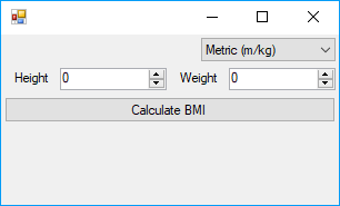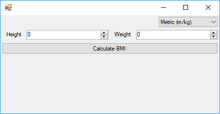 För att skapa filen BodyMassIndexForm.cs, följ instruktionerna från tidigare lektioner kring att skapa Windows Forms-projekt (där motsvarande fil istället har hetat MyForm.cs).